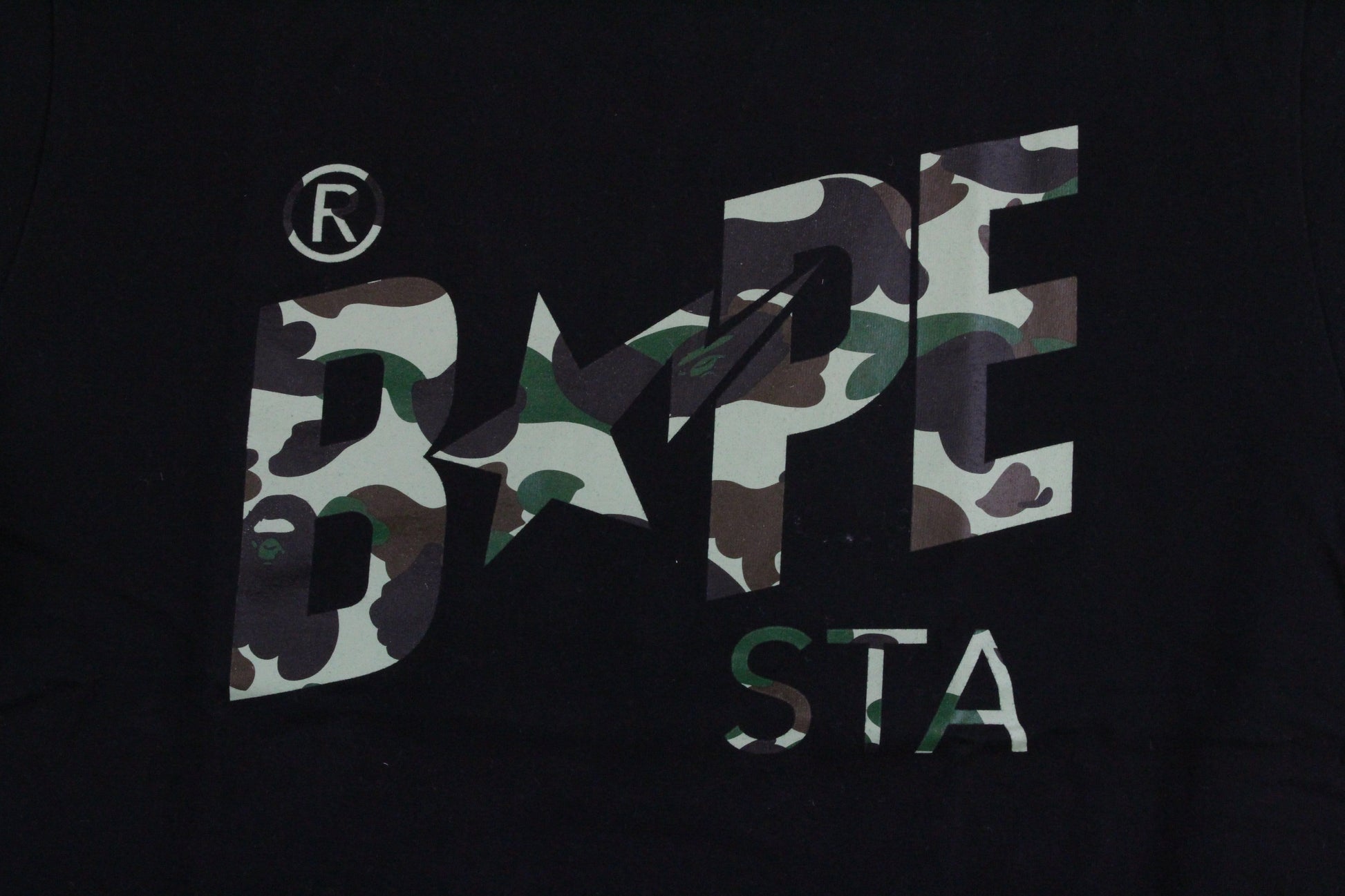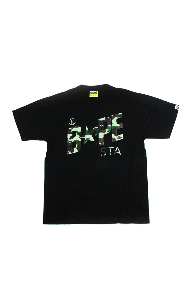 Bape 1st Green Camo Bapesta Logo Tee Black