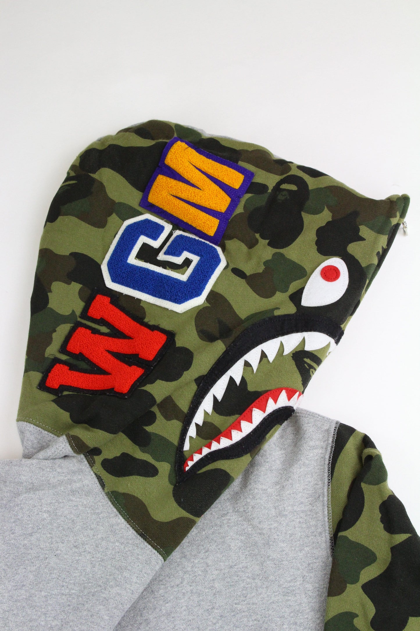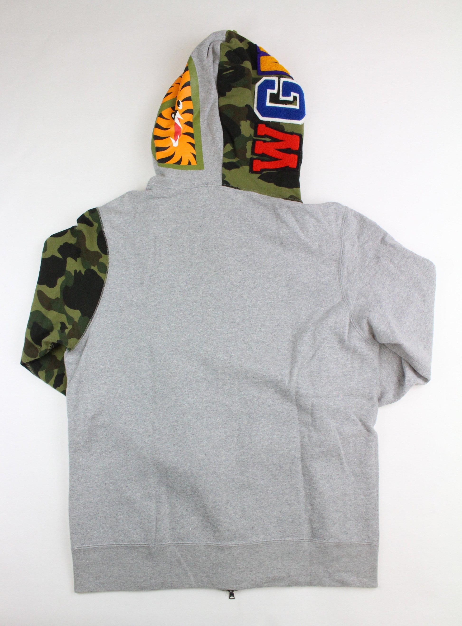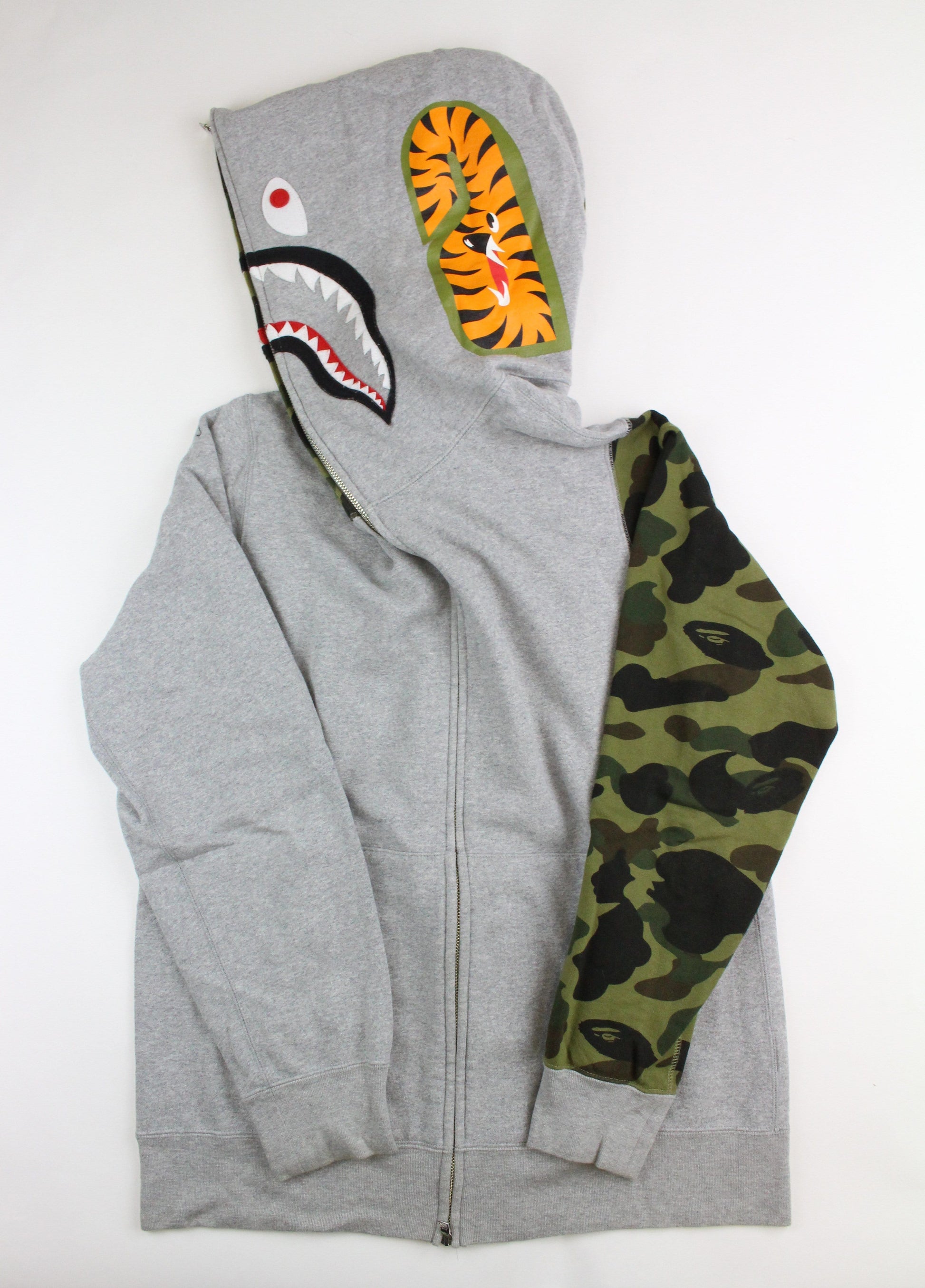 Bape 1st Green Camo Half Shark Hoodie Grey