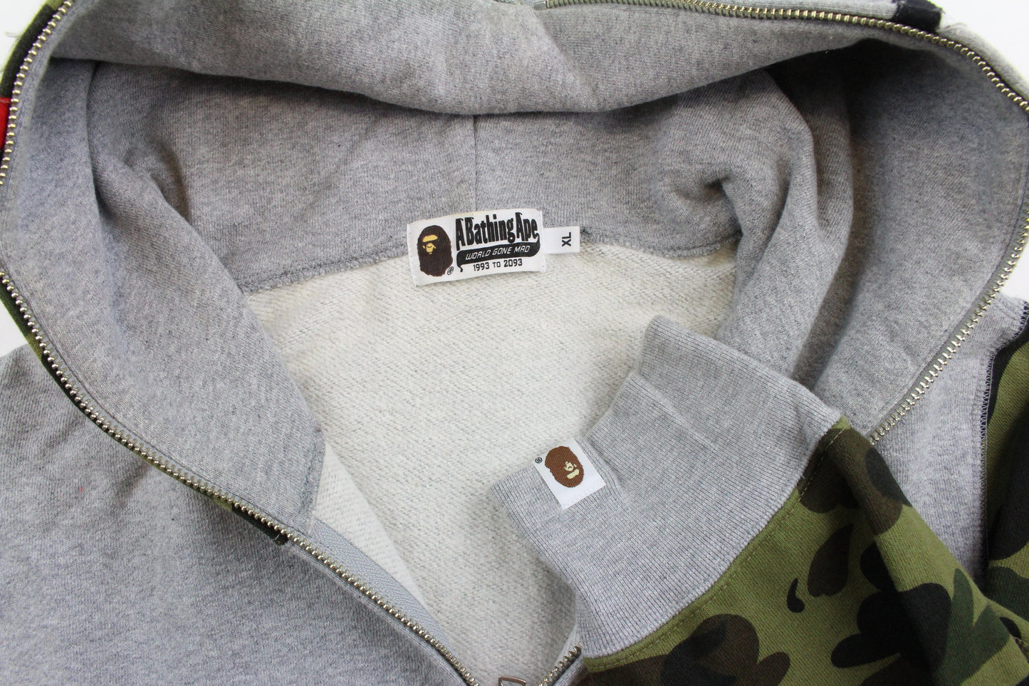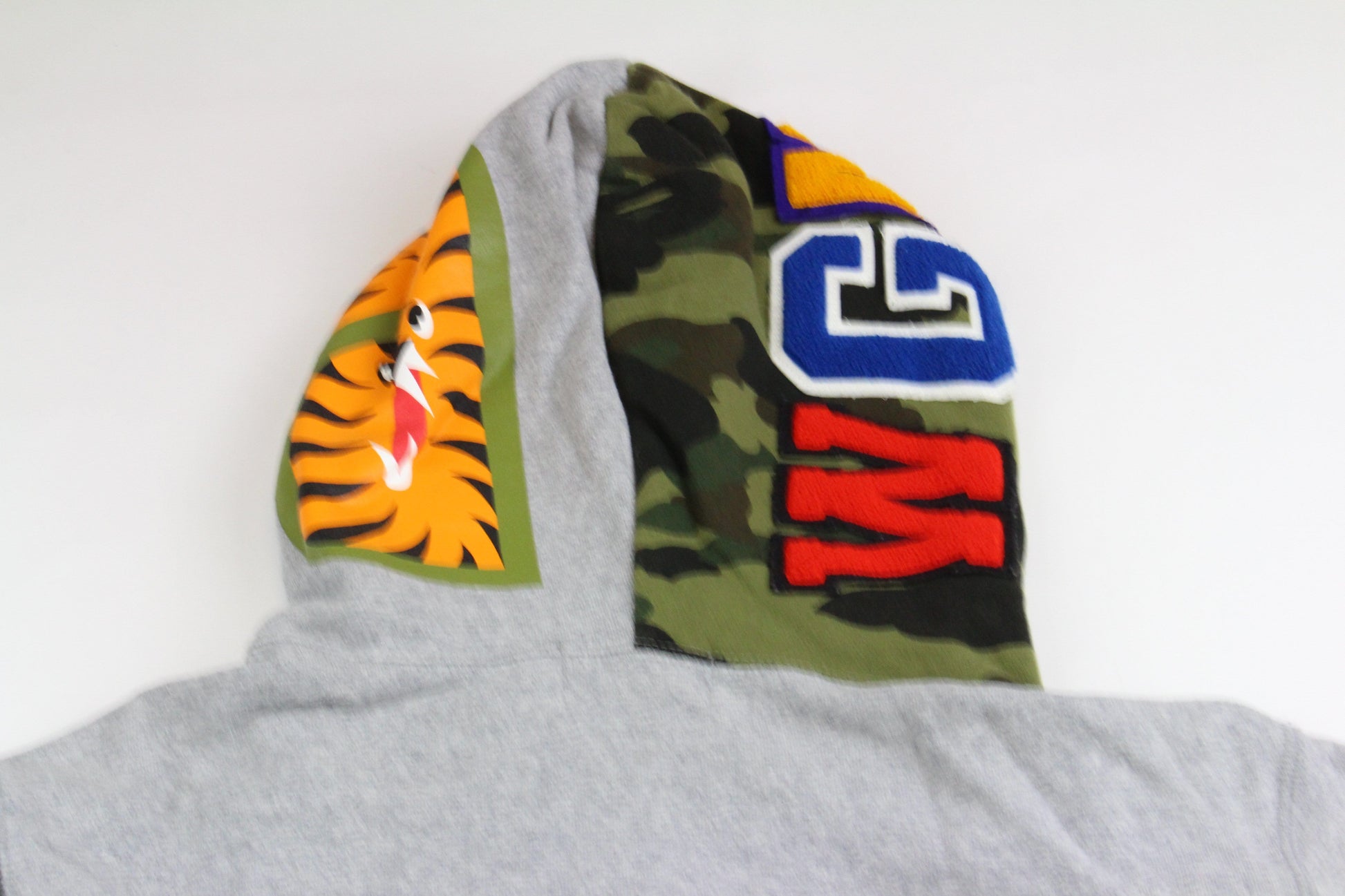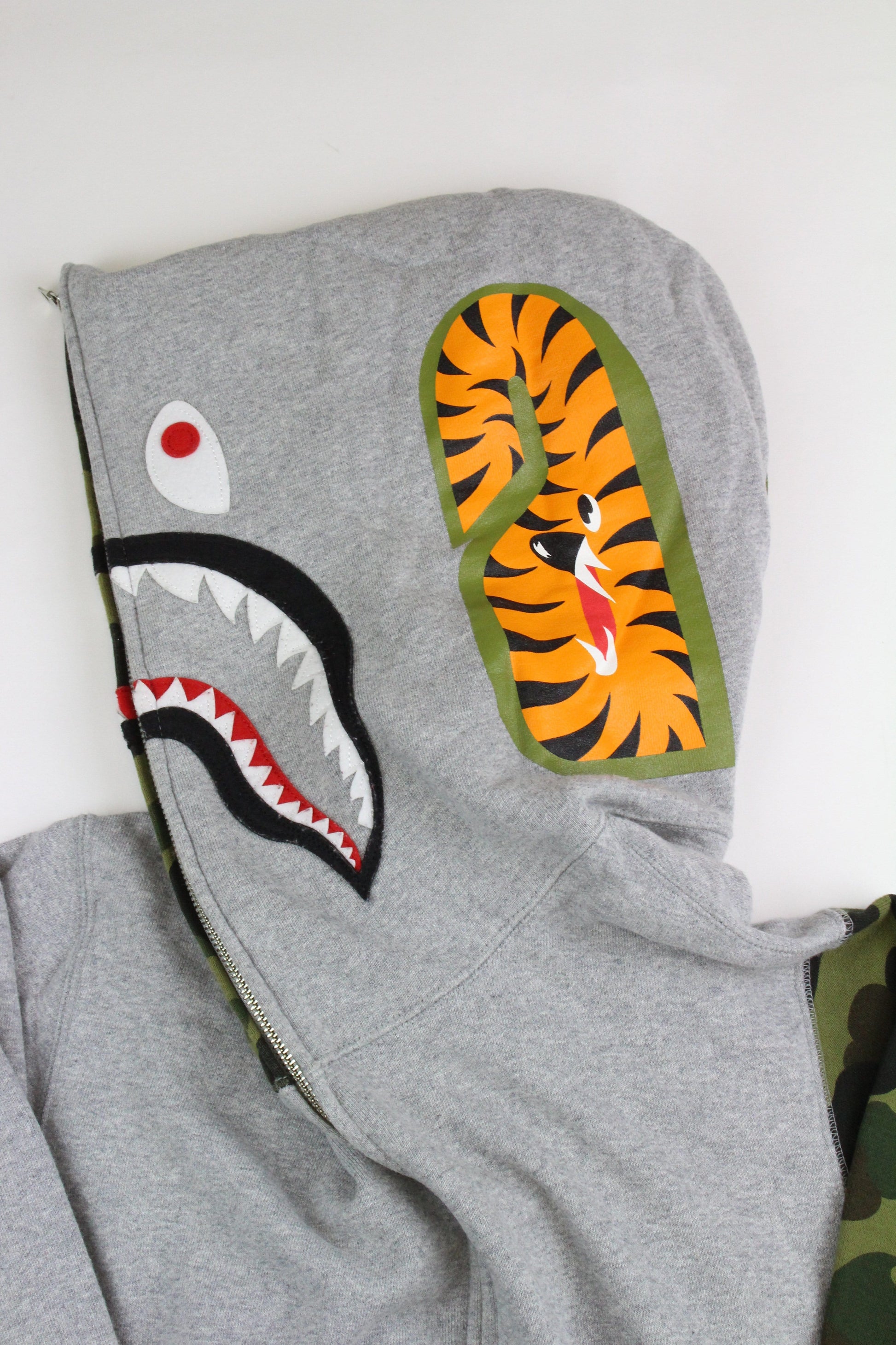 Bape 1st Green Camo Half Shark Hoodie Grey