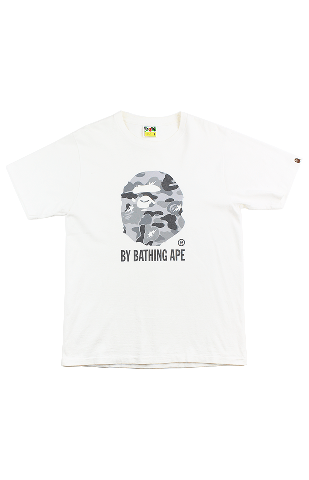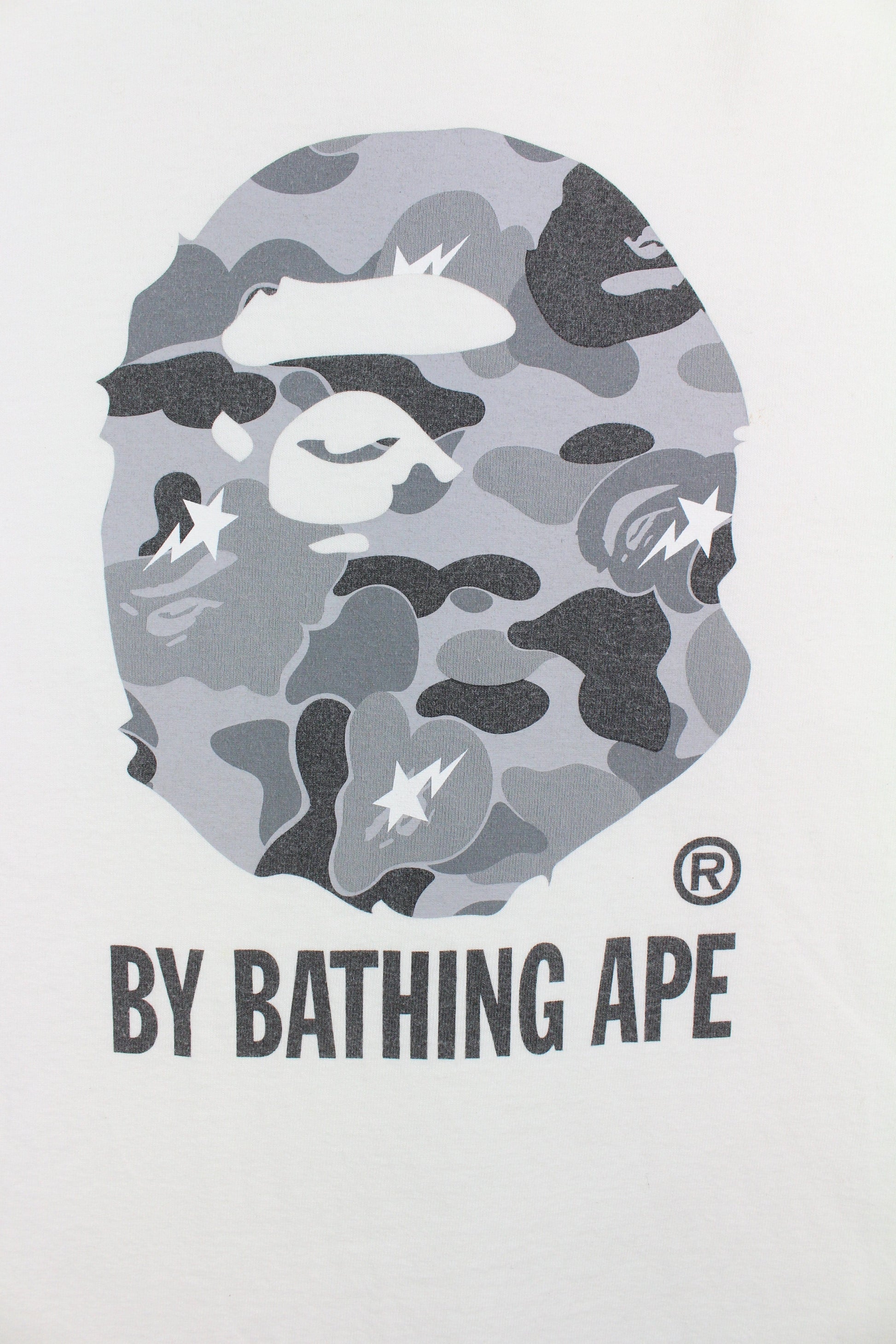 Bape Grey Camo Bapesta Big Ape Logo Tee White