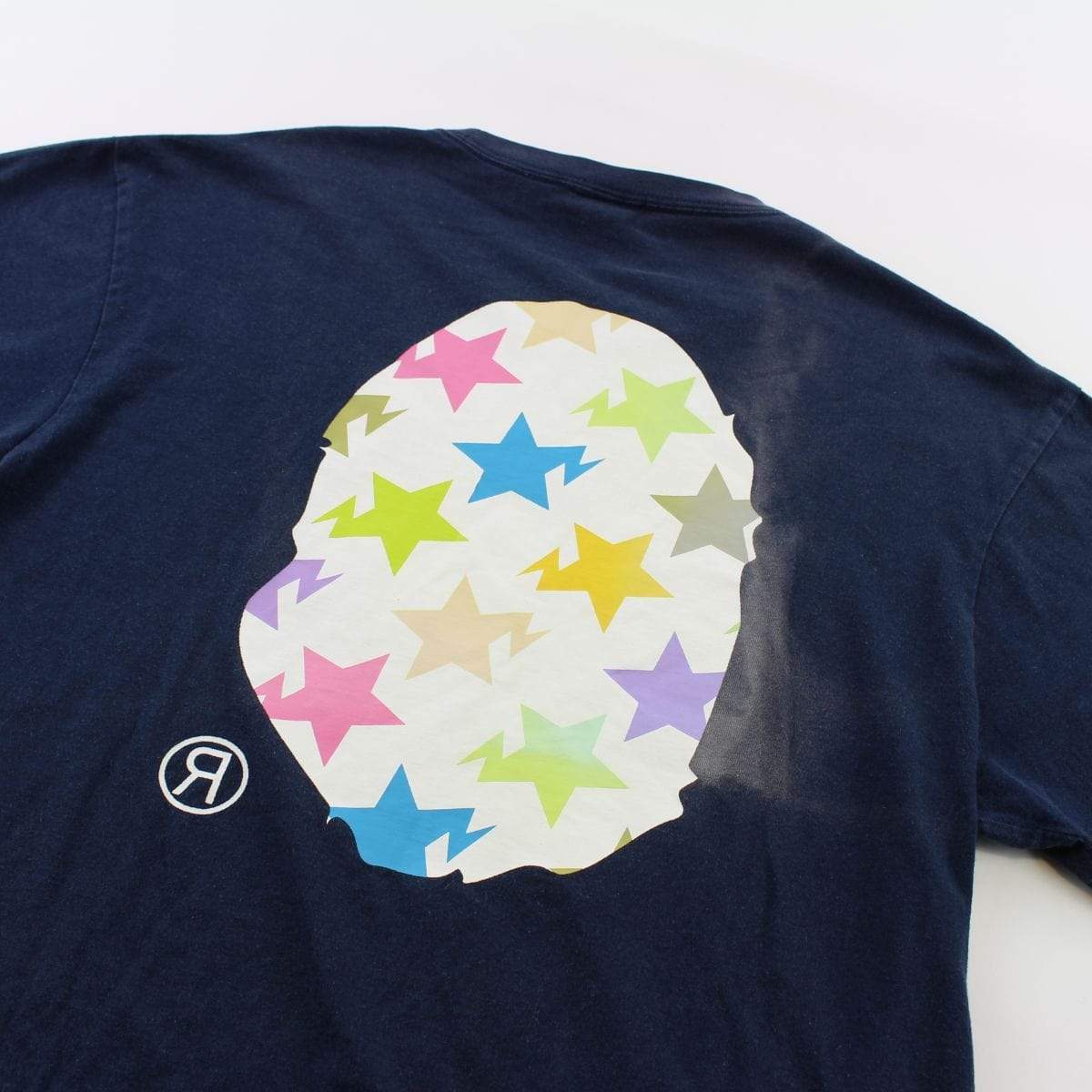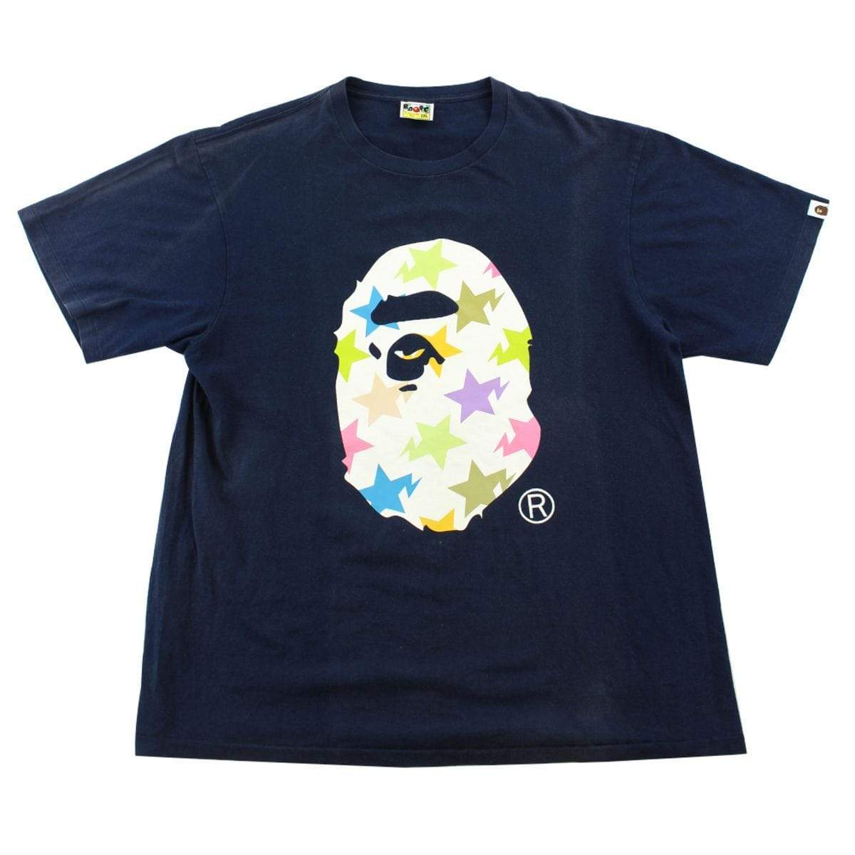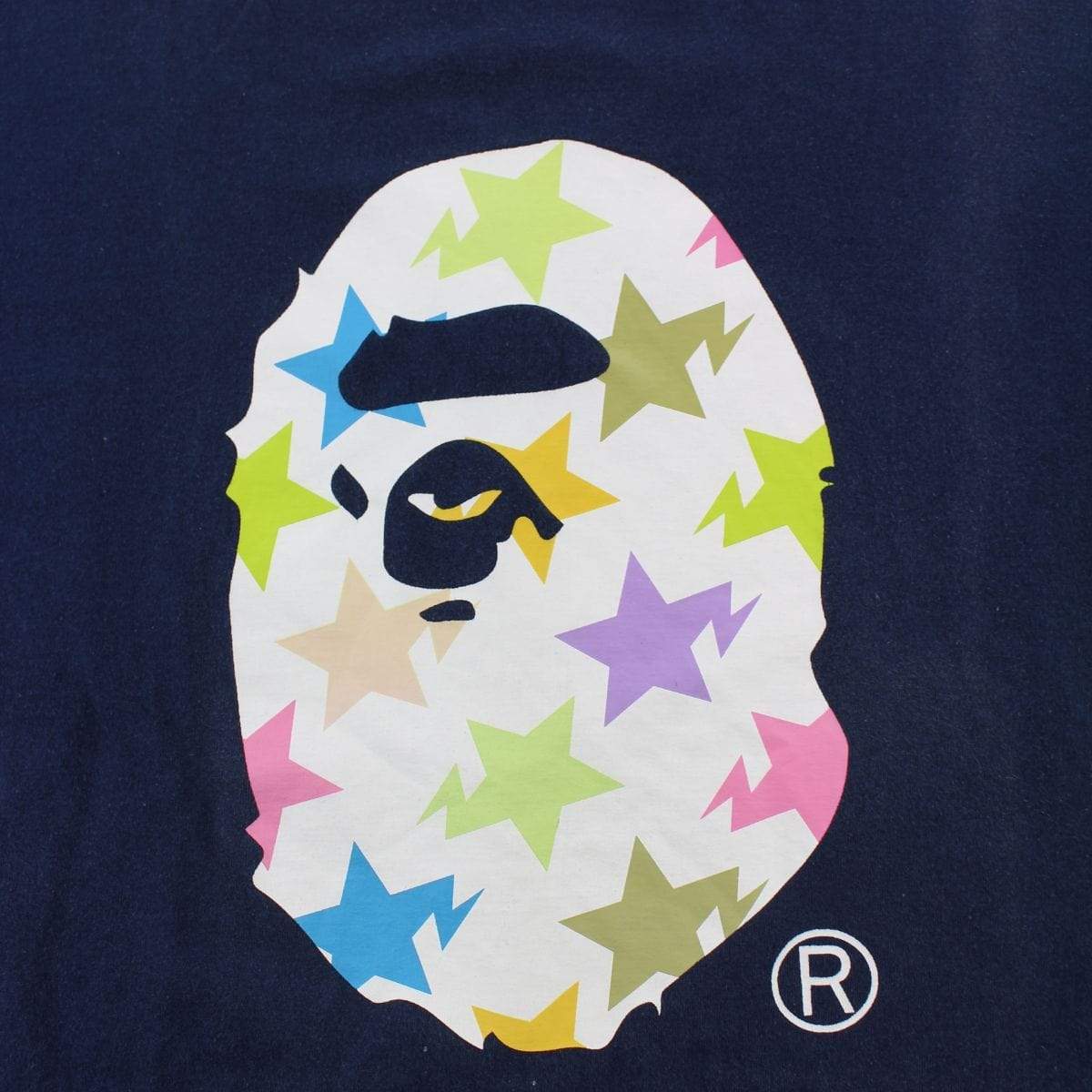 Bape Multi Colour Bapesta Big Ape Logo Tee Navy