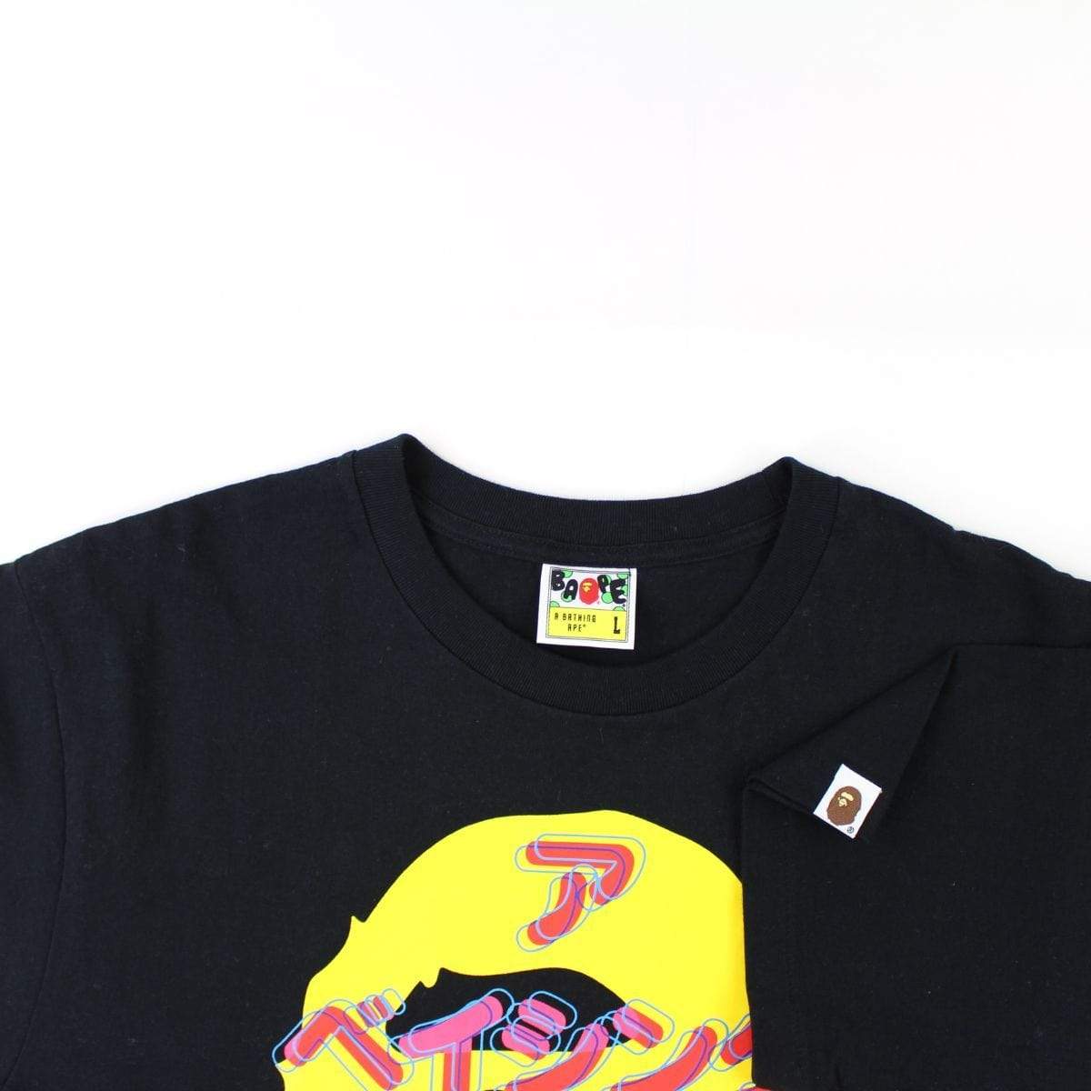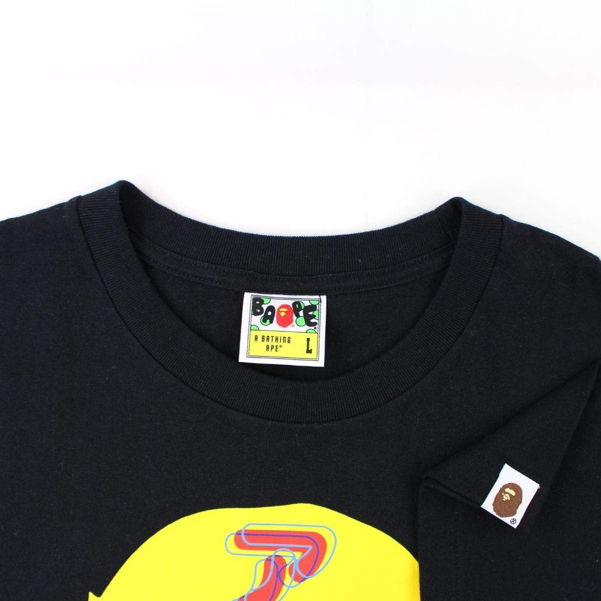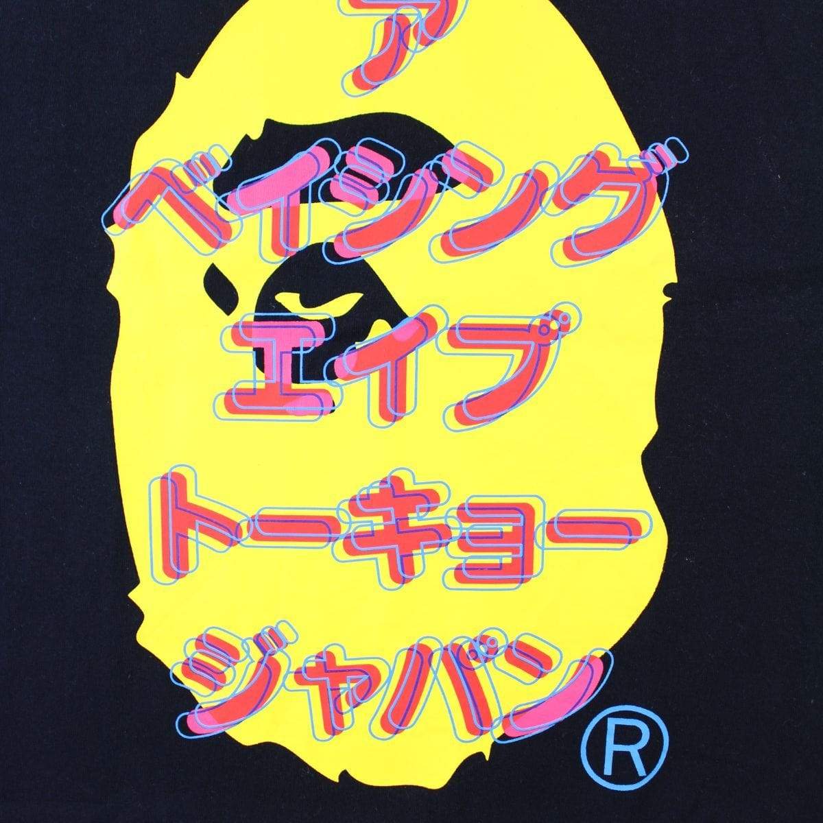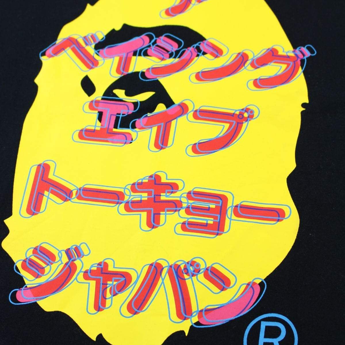 Bape Pink Katakana Text Yellow Big Ape Logo Tee Black