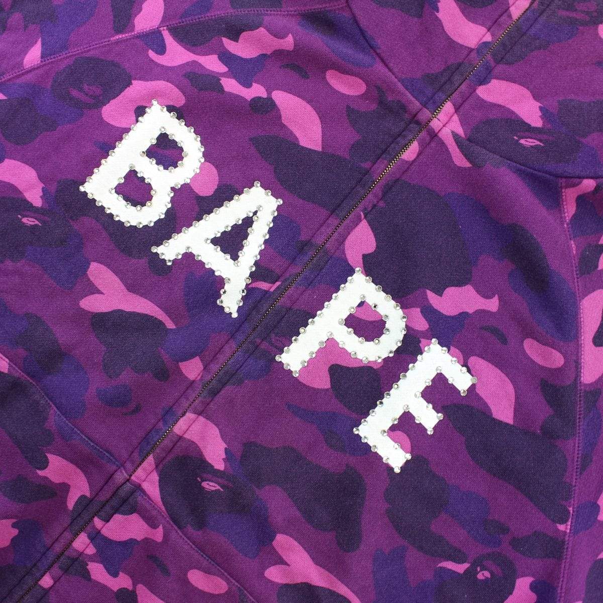 Bape Purple Camo Swarovski Text Full Zip Hoodie