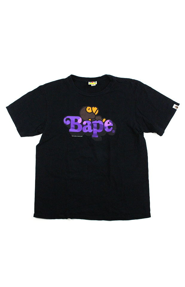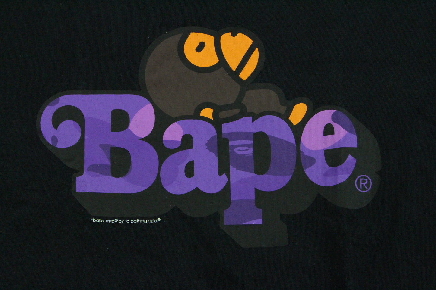 Bape Purple Camo Text Sleeping Milo Tee Black