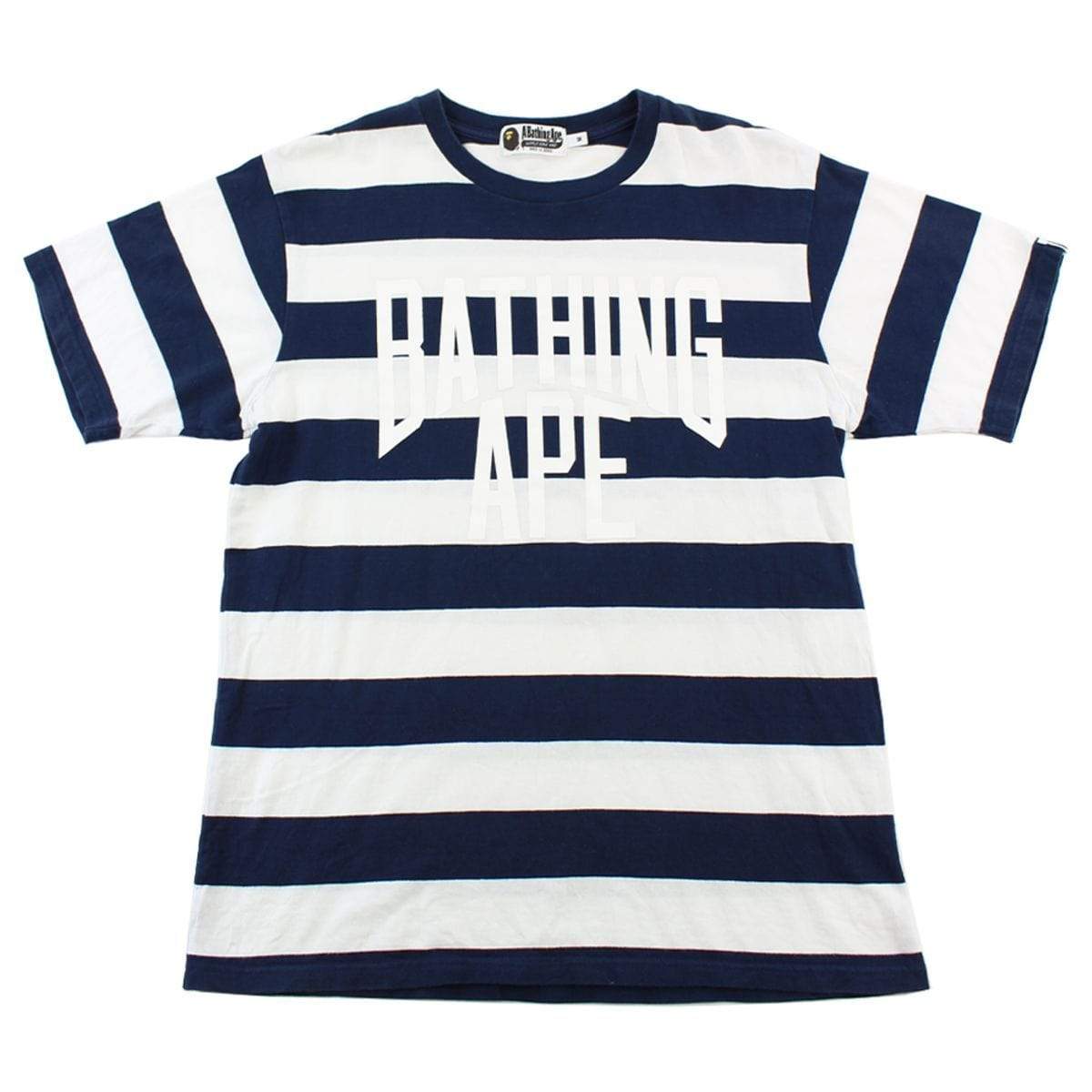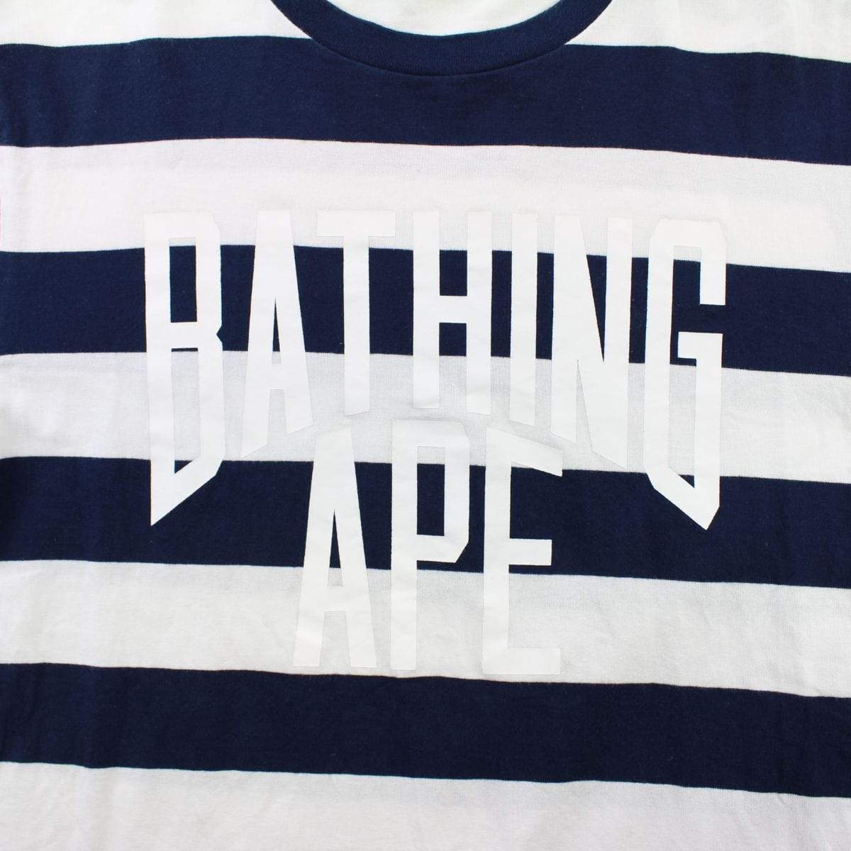Bape White Bathing Ape Text Striped Navy Tee White