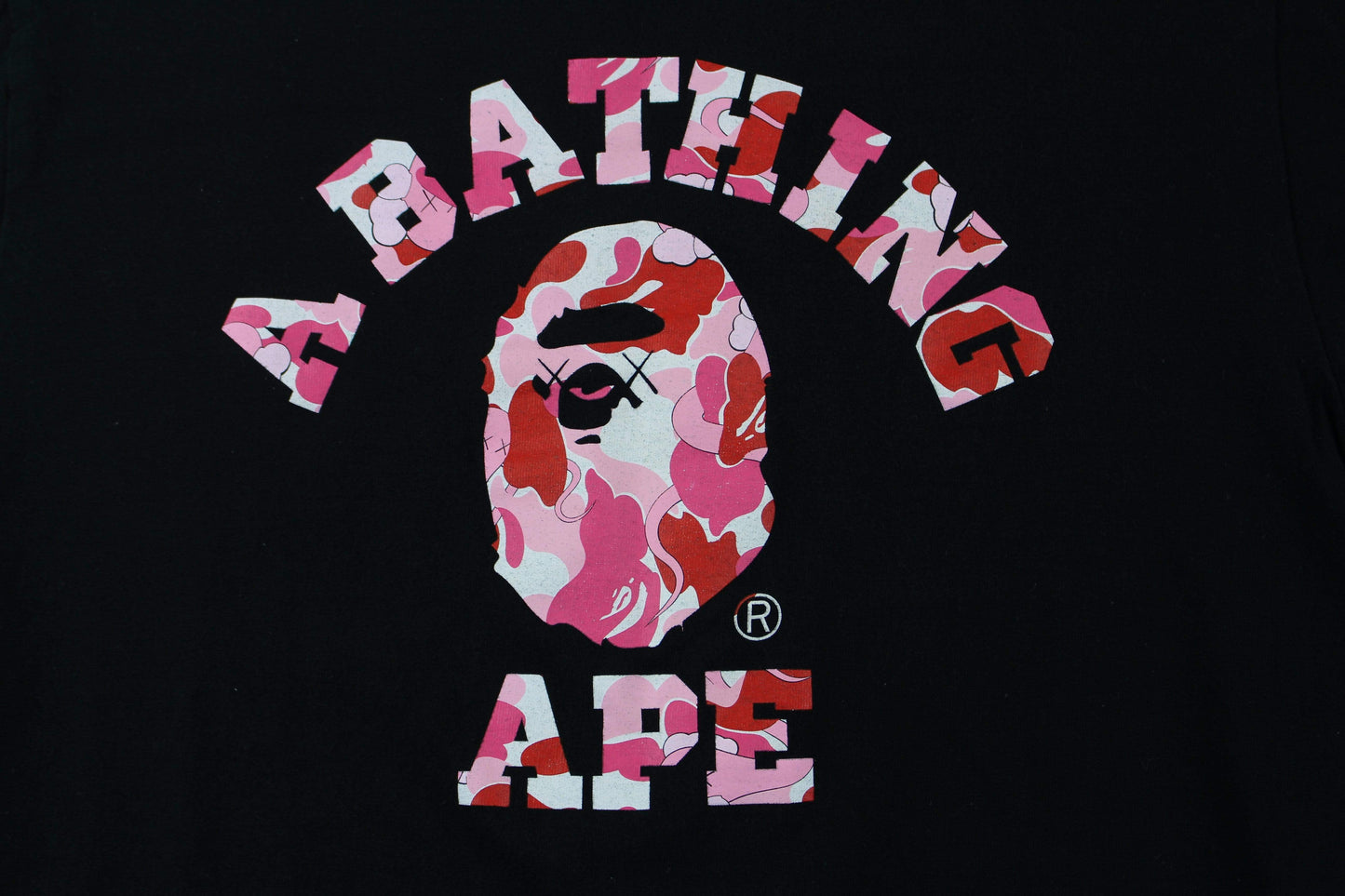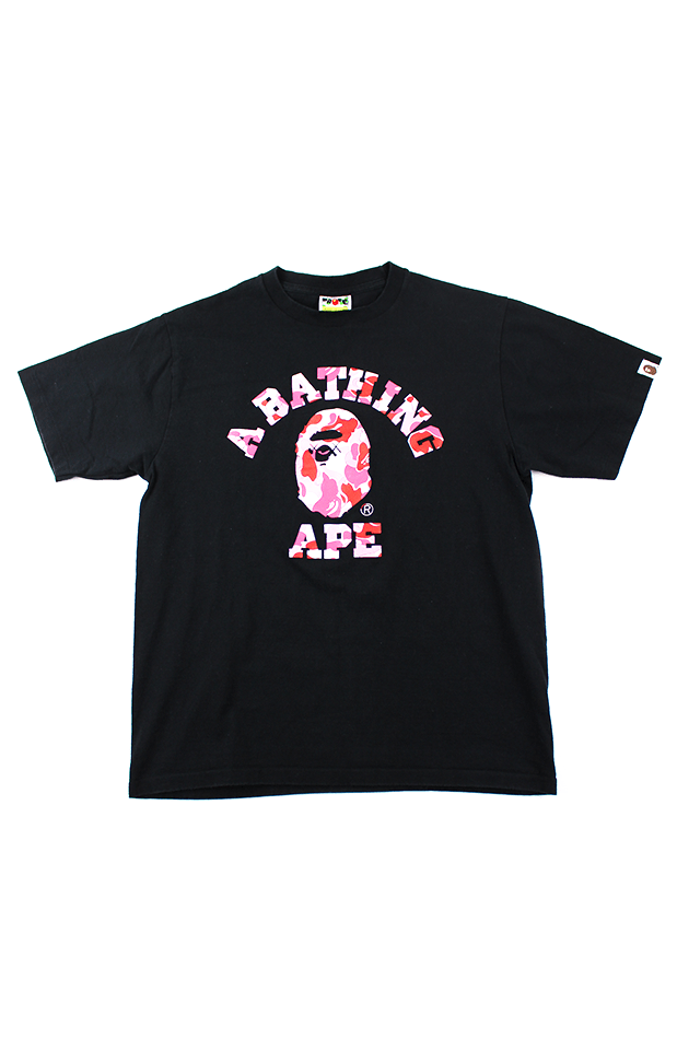 Bape x Kaws ABC Pink Camo College Logo Tee Black